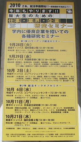 さて、明後日の10月2日(土)は阪大吹田キャンパスです。乞うご期待!!