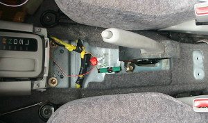 同様に、パーキングブレーキ周辺のカバーも取り外して、赤いコネクタを取り付けます。