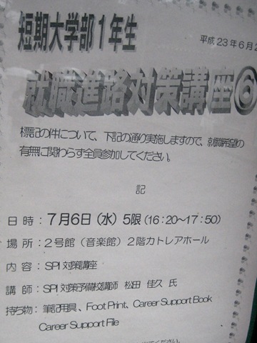 まだまだ前期の講義や試験が真っ最中の中でのSPI講座でしたが、