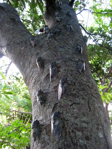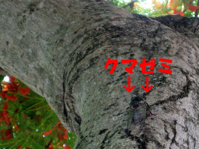 問題 下の写真は沖国大キャンパス内の樹木の写真です。クマゼミは何匹いるでしょう?