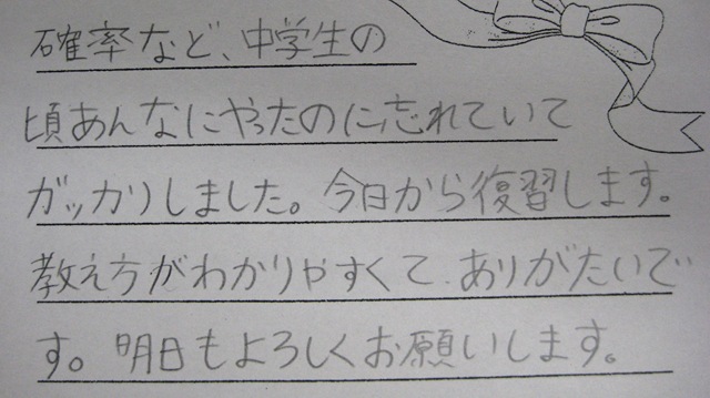そして、今日で確率はOKになったはずです。復習がんばってね!