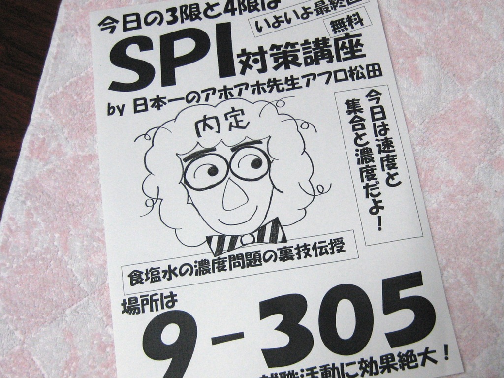 というわけで全力投球のSPI講座は無事、終了いたしましたが、アフロ松田はまだ帰りません!