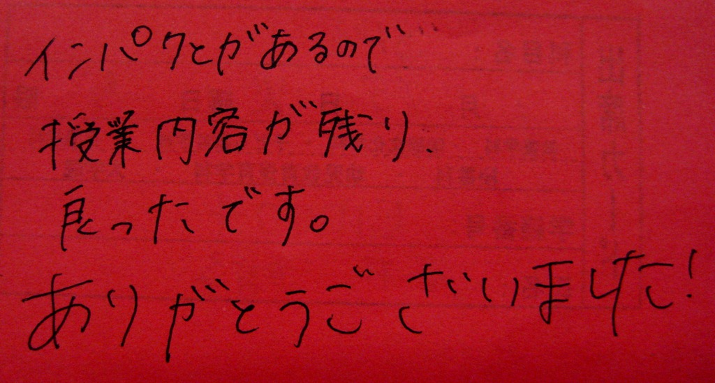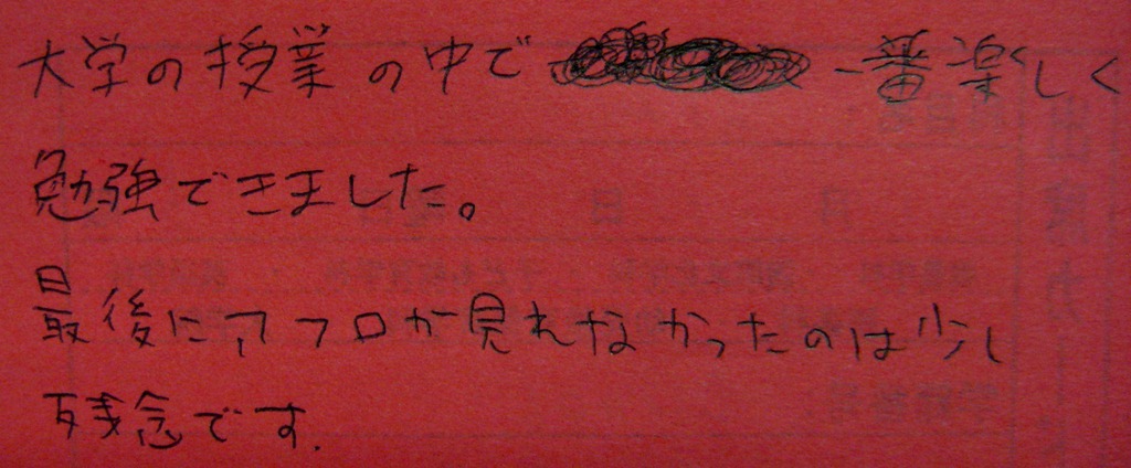 というわけで、最終回のアンケートのほんの一部、16連発いってみよ~!