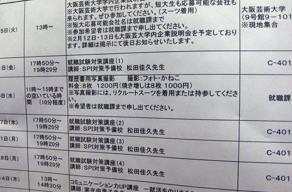 そうそう、前期と後期の全ての講義はDVDにして、キャリアサポートセンターに置いてあるので、ゼヒゼヒご利用下さいませ~\(^o^)/