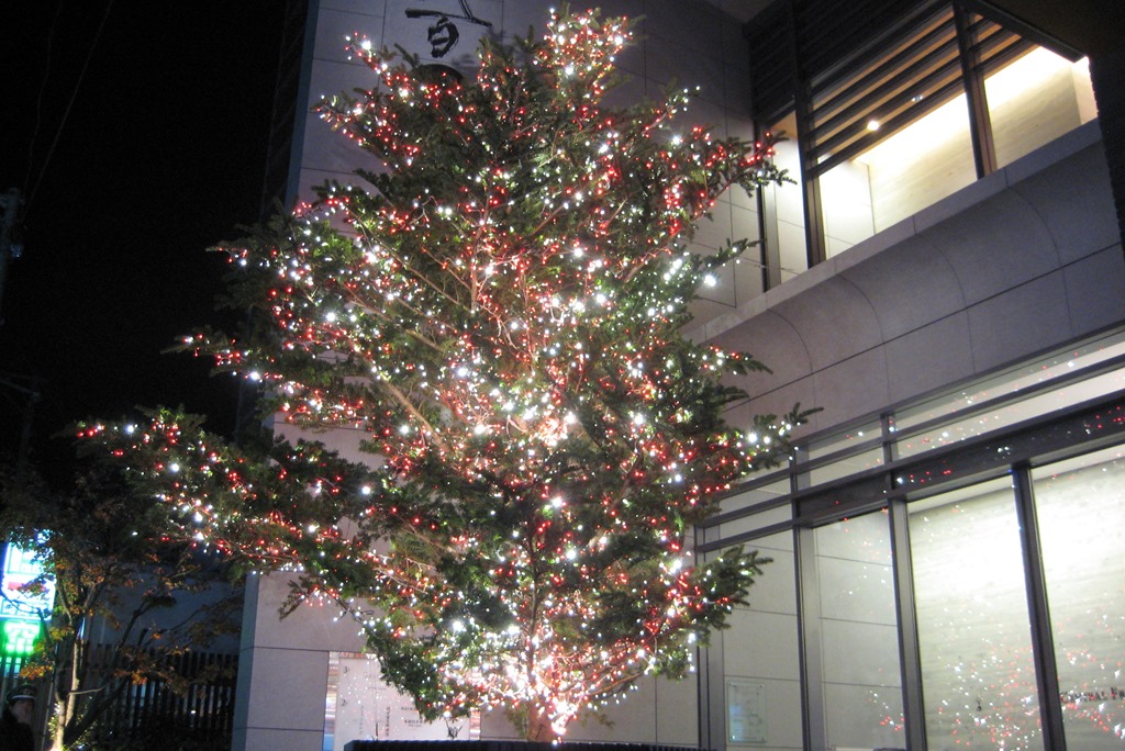 大阪キリスト教短期大学さんのクリスマスツリーは本物のモミの木。イイね~!