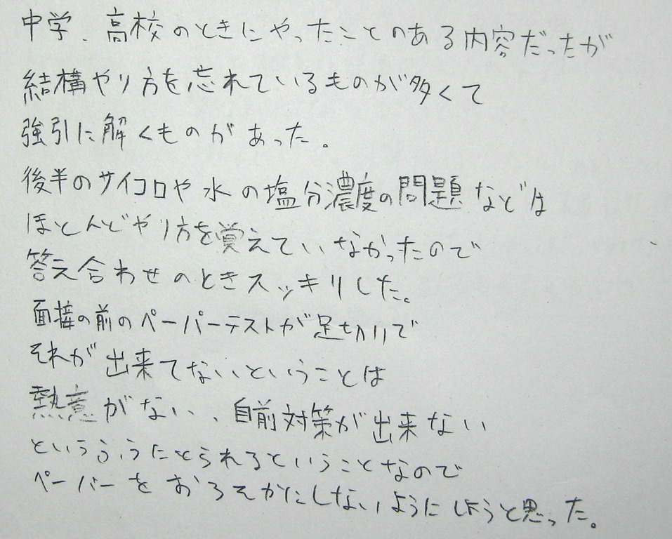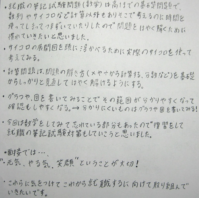 その調子!書類や筆記で落とされるのは嫌やもんね!
