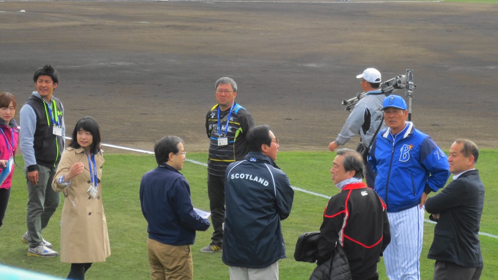 セカンドベース横には、絶好調男こと中畑監督です(^_^)/