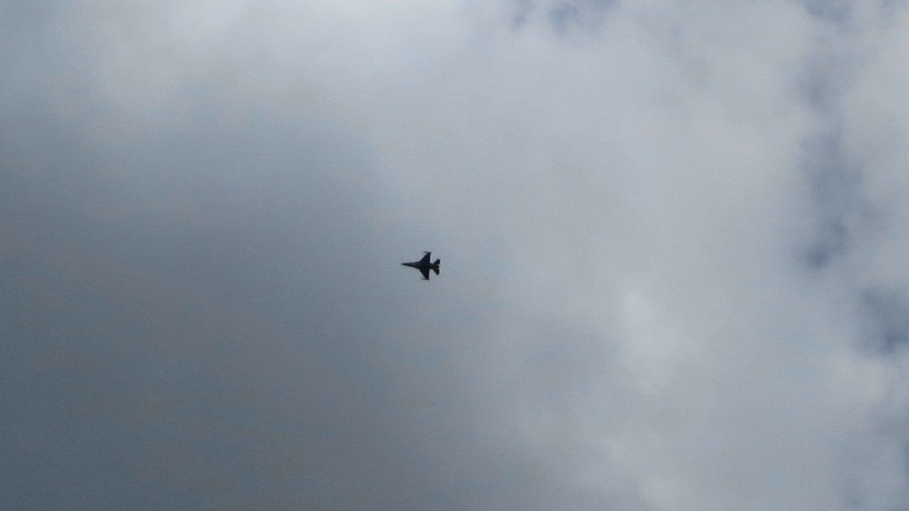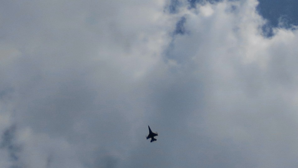 野球場の上を戦闘機が飛んでました。嘉手納基地のかな。