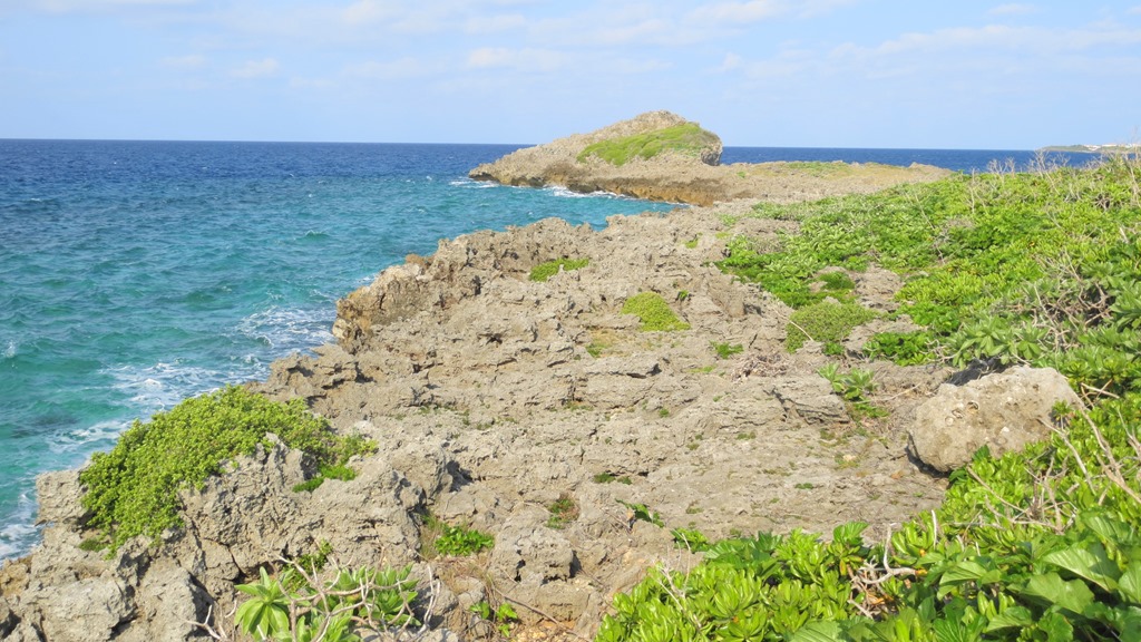 西平安名崎到着。先端まで行けそうですが、止めときました。