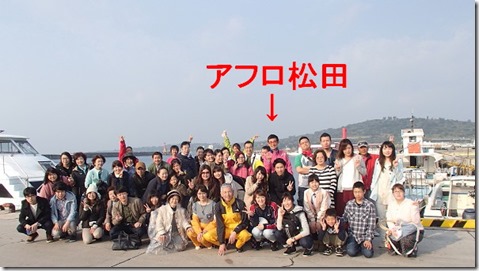 本部港での集合写真です。2隻に分乗しましたよ(^_^)/