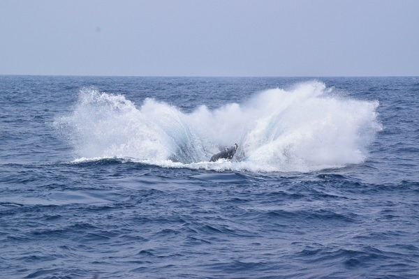 何の前触れも無く、船の真横でクジラが大ジャンプ!