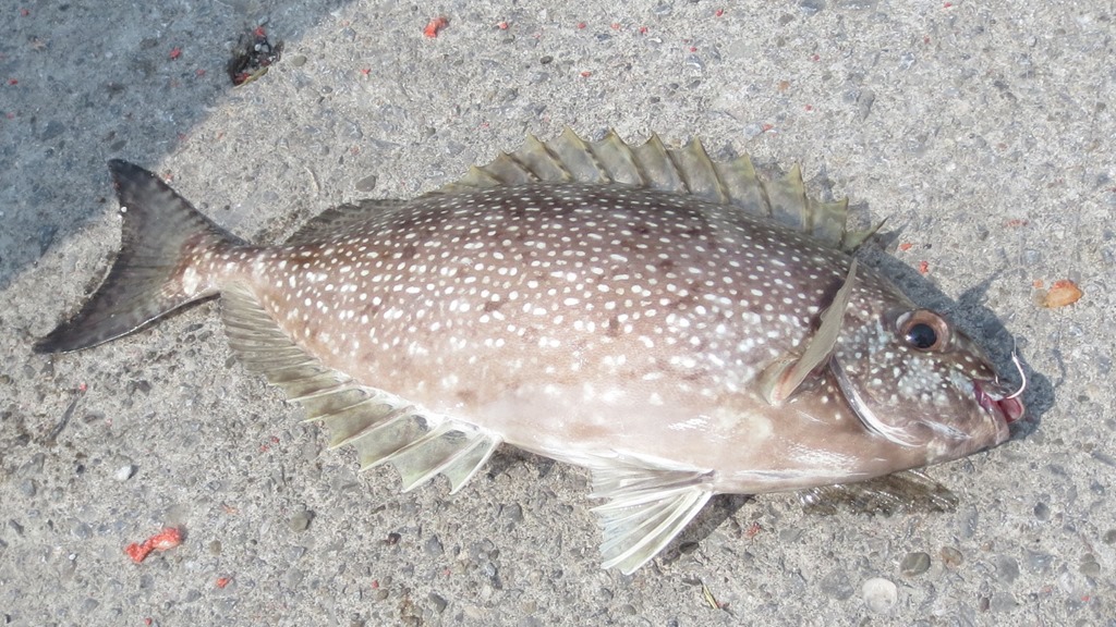 岸壁には釣り人が10名ほど。画像はアイゴ。