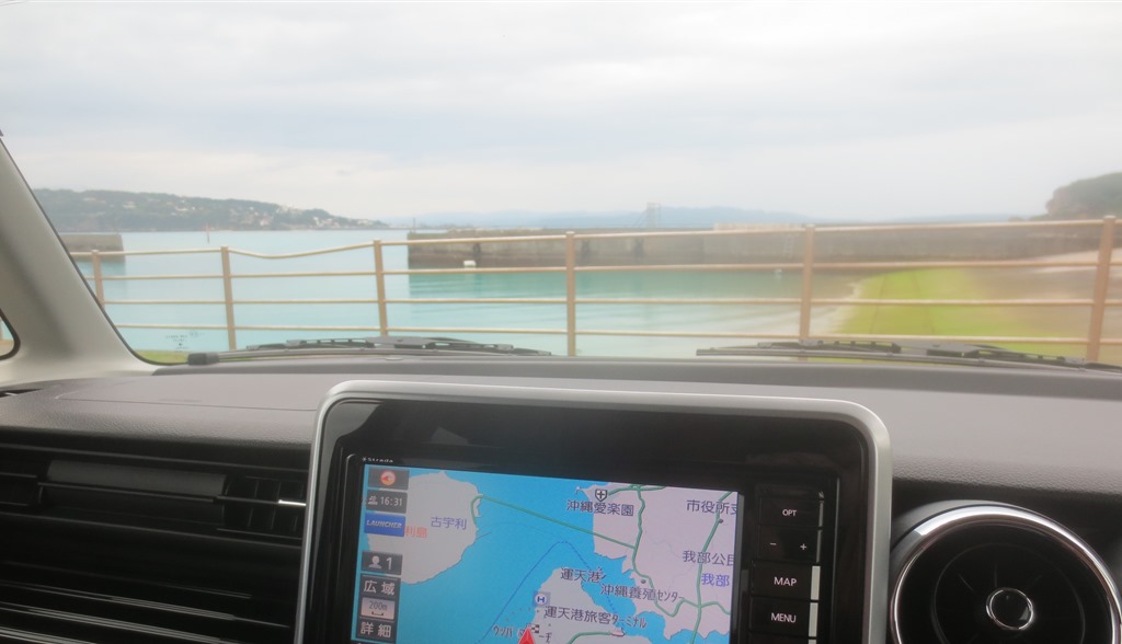 現在、恩納村屋富祖。今帰仁漁港まで33.4km。