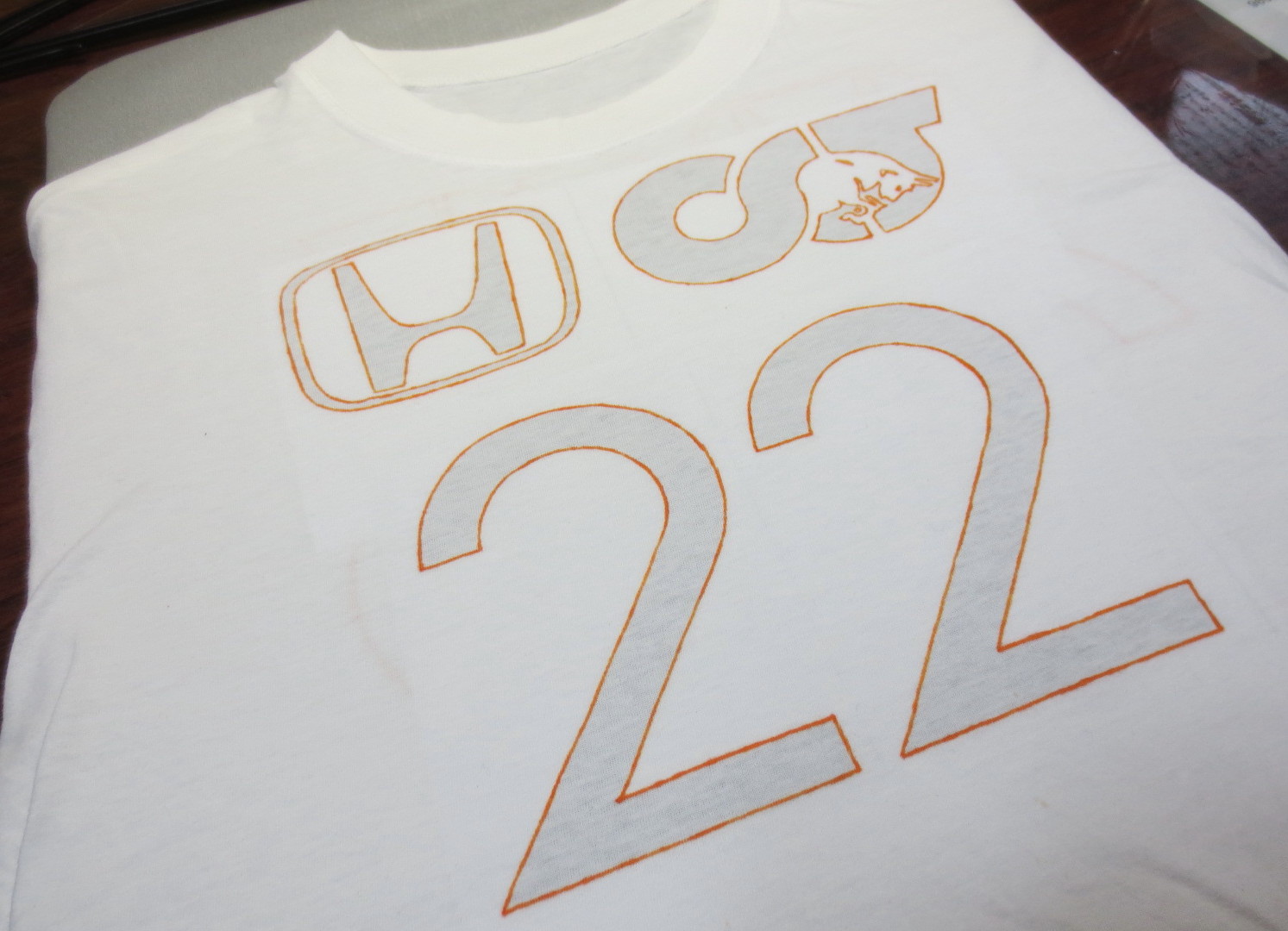アルファタウリの角田裕毅選手応援用に染色ペンで描きました。手作り感あふれてます。
