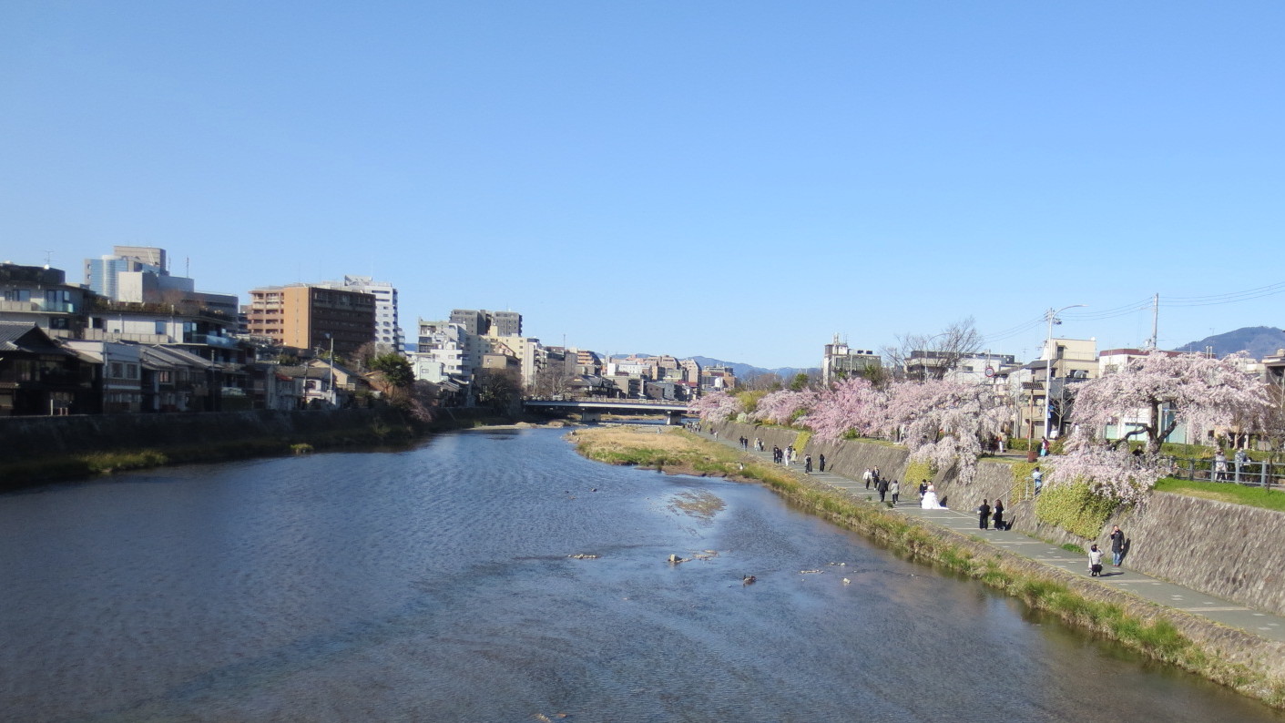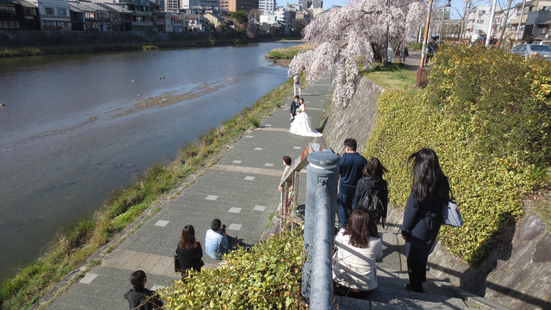 今日は天気もいいし、桜も満開で、晴れ着の撮影には絶好の日和です。鴨川沿いで、この手の撮影はよく出会います。1年に10回ぐらいは見かけるかな。SPI対策予備校アフロ松田
