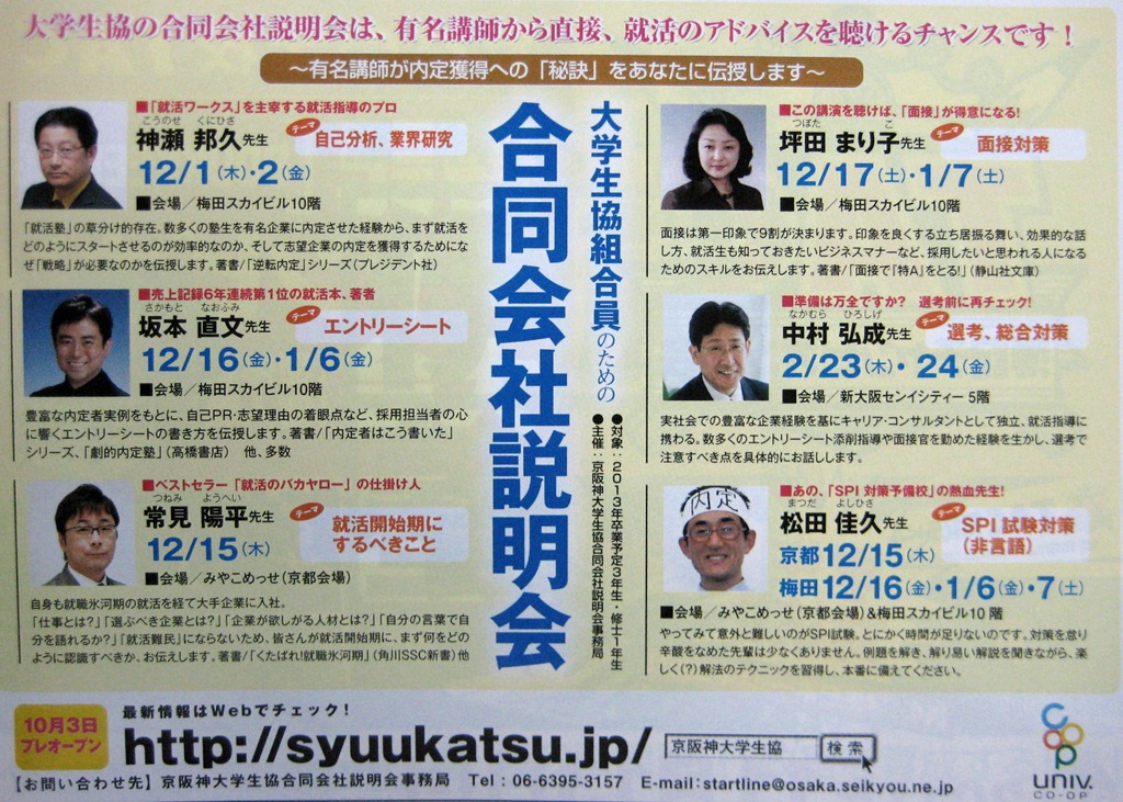 就職センターの皆様、とりわけ、大兼さんにはお世話になり、ありがとうございました。そうそう、偶然、前任者の仲宗根さんにもお会いできました!。あの広大なキャンパスで出会うなんて、ほとんど奇跡???