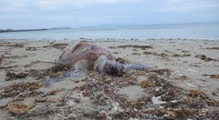 ウミガメさんの骸が・・。甲羅の長さは約60cm。