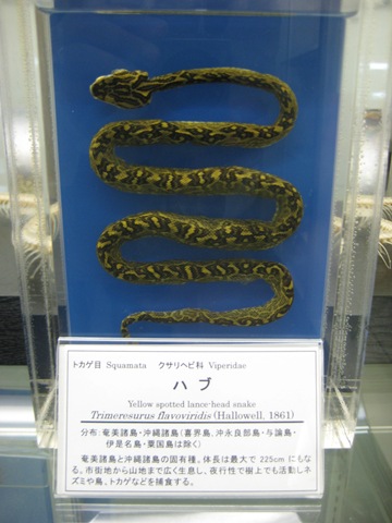 ハブの標本がありました。なんか、マムシとよく似ていますね。(>_<)