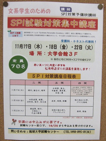 来週は琉球大学でSPI対策講座アァァ~!!!!